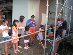雨の時や最近は暑いので、倉庫の方でやっているのですが、友達の親父さんが大工さんで、竹を切ってきてくれて青竹で、「流しそうめん」をしてくれました^^